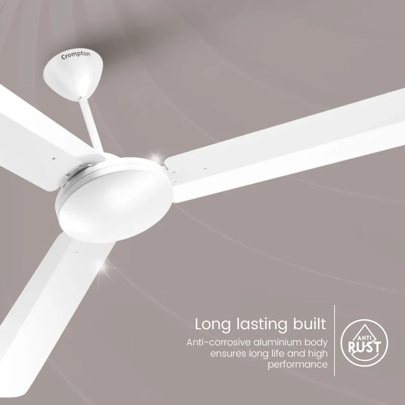 Experience the epitome of comfort with Crompton's Jura Prime. Designed to perfection, these fans are equipped with double ball bearings for enhanced durability, ensuring a prolonged life span. The anti-rust feature guarantees a lasting shine, while the superior air delivery and high-speed settings provide maximum cooling efficacy. Backed by a reassuring 2-year warranty, Crompton Regular designer fans are a seamless blend of style and functionality.