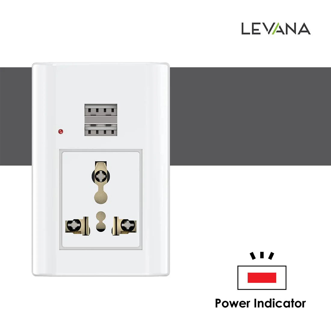 Polycab Travel Adaptor with Twin USB Charging Port PC For Home & Office Use With Surge Protection and Indicator White and Grey Socket For Computer & Laptop